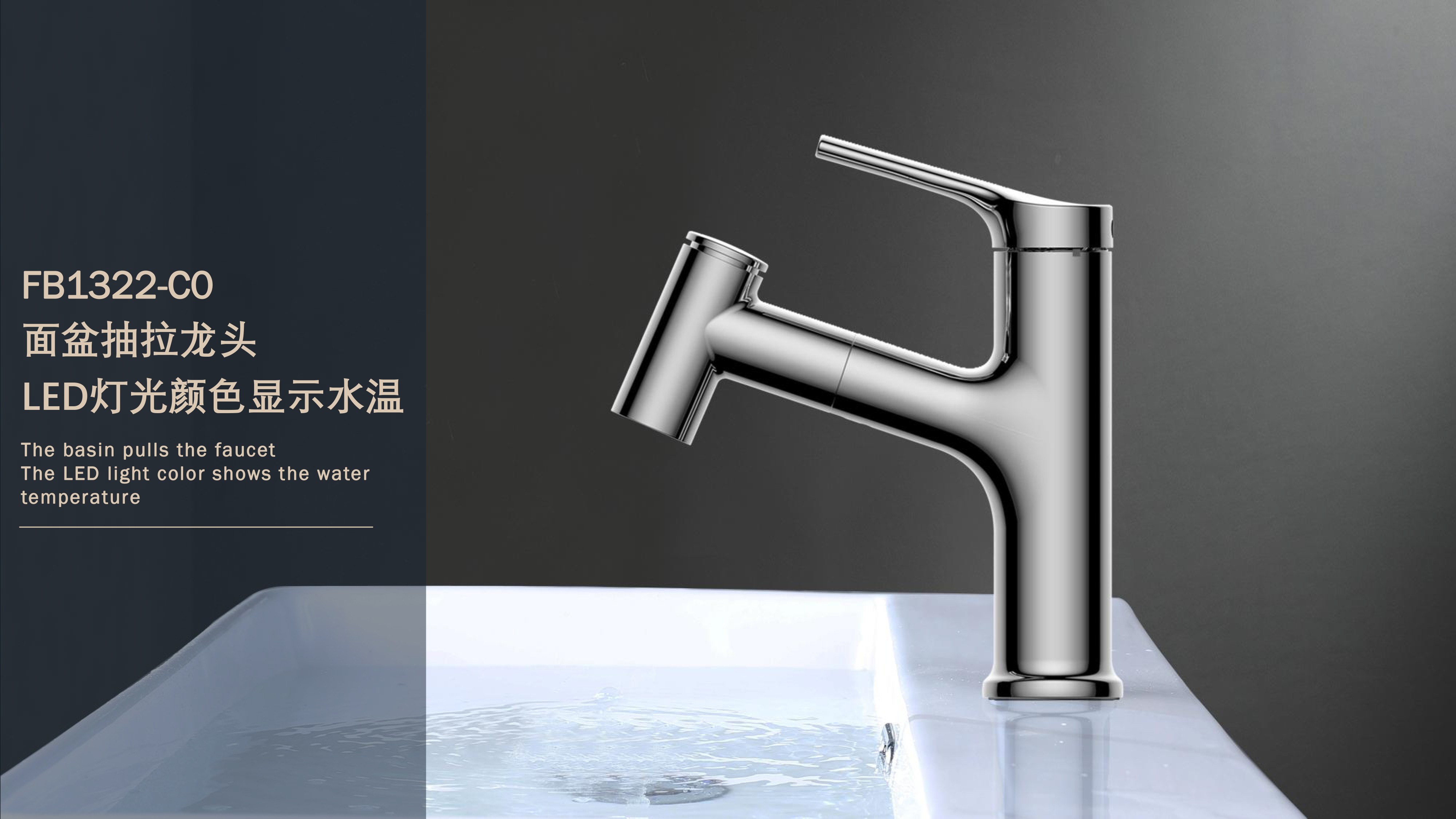 FB1322-C0 LED燈光顏色顯示水溫面盆抽拉龍頭
