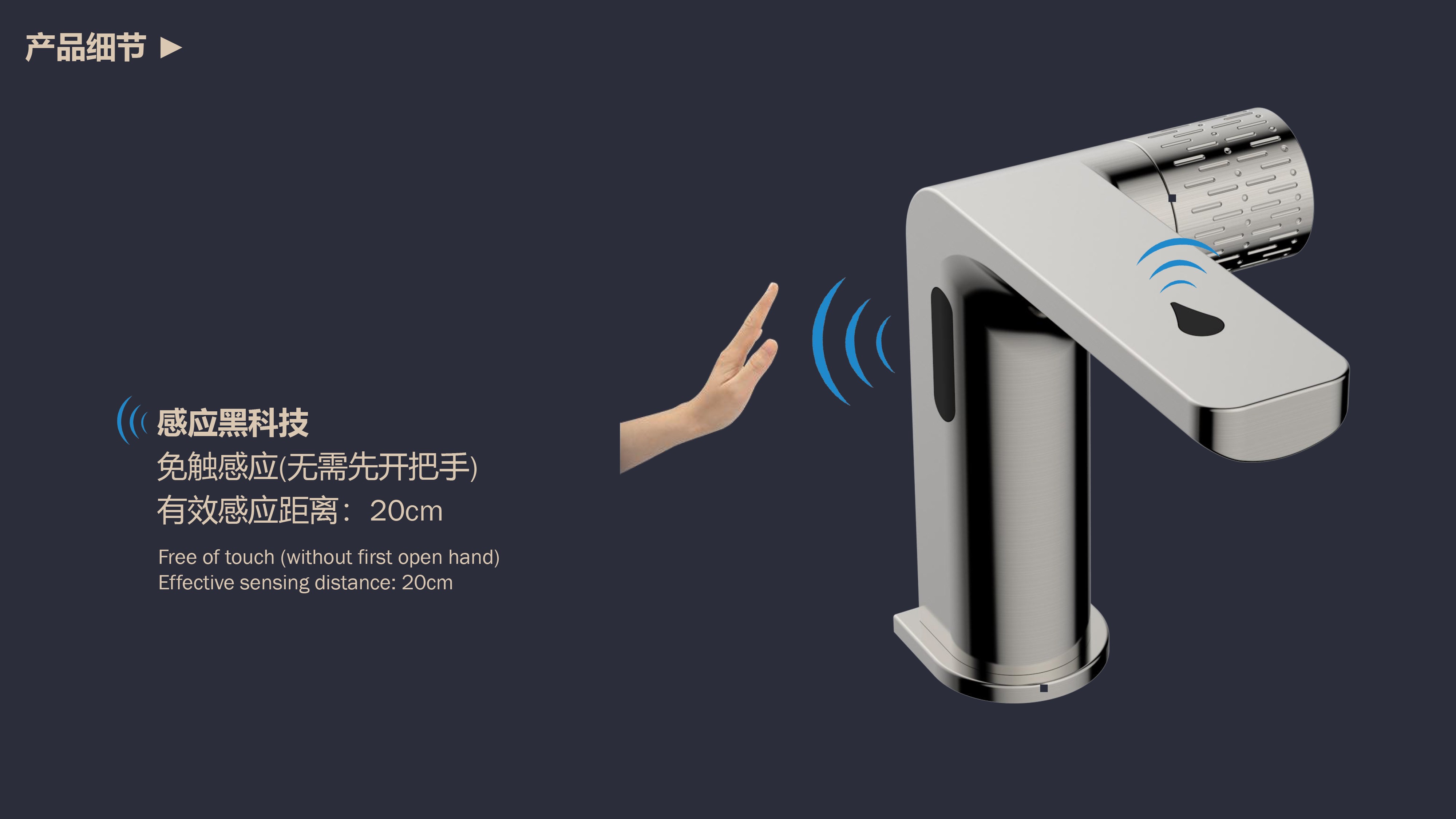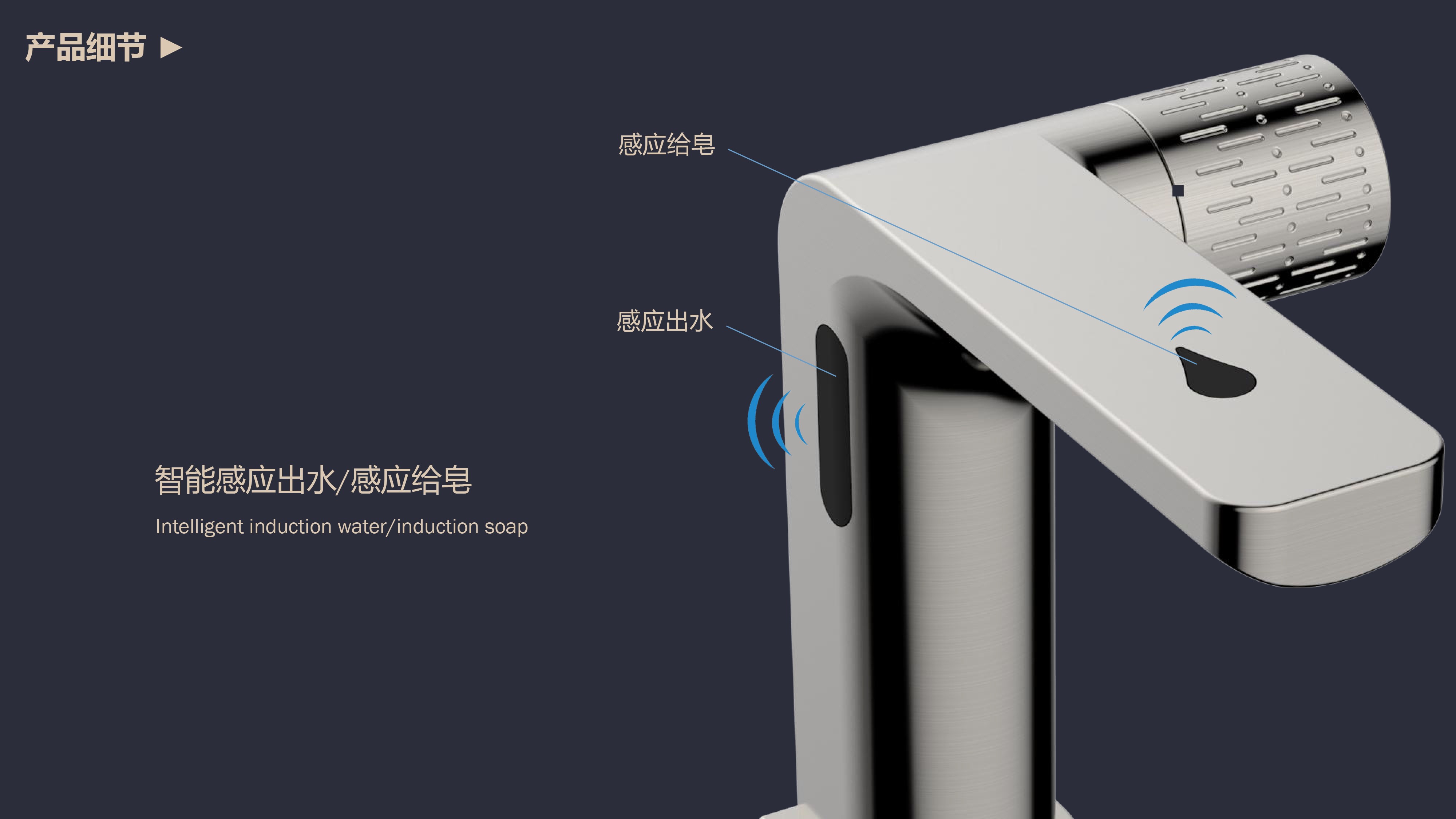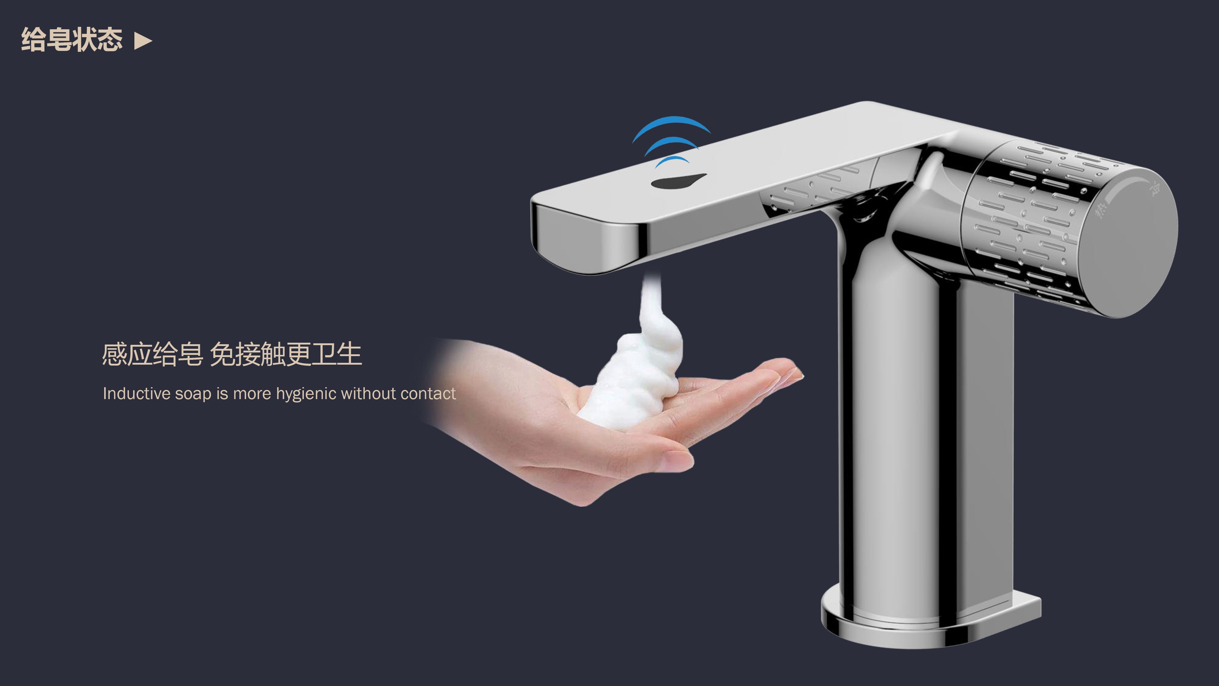 0接觸更健康,感應(yīng)給皂雙控龍頭;有效感應(yīng)距離20cm;智能芯片恒溫專利技術(shù);氣泡水觸感細(xì)膩不飛濺
