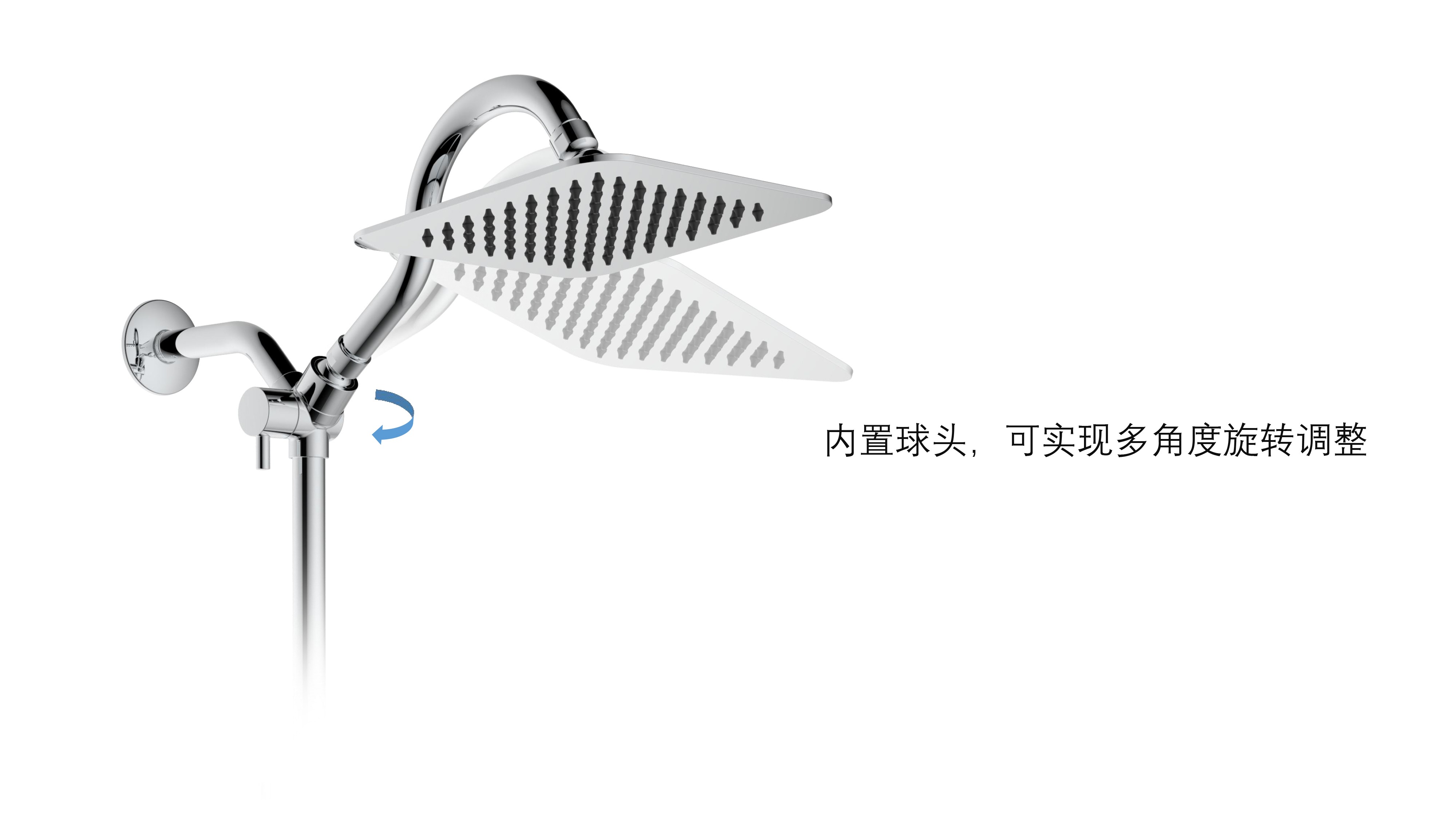 上出水彎管套裝;頂噴內(nèi)置球頭,可實(shí)現(xiàn)多角度旋轉(zhuǎn)調(diào)整;把手切換頂噴出水、花灑出水;轉(zhuǎn)動(dòng)把手調(diào)節(jié)滑座高低