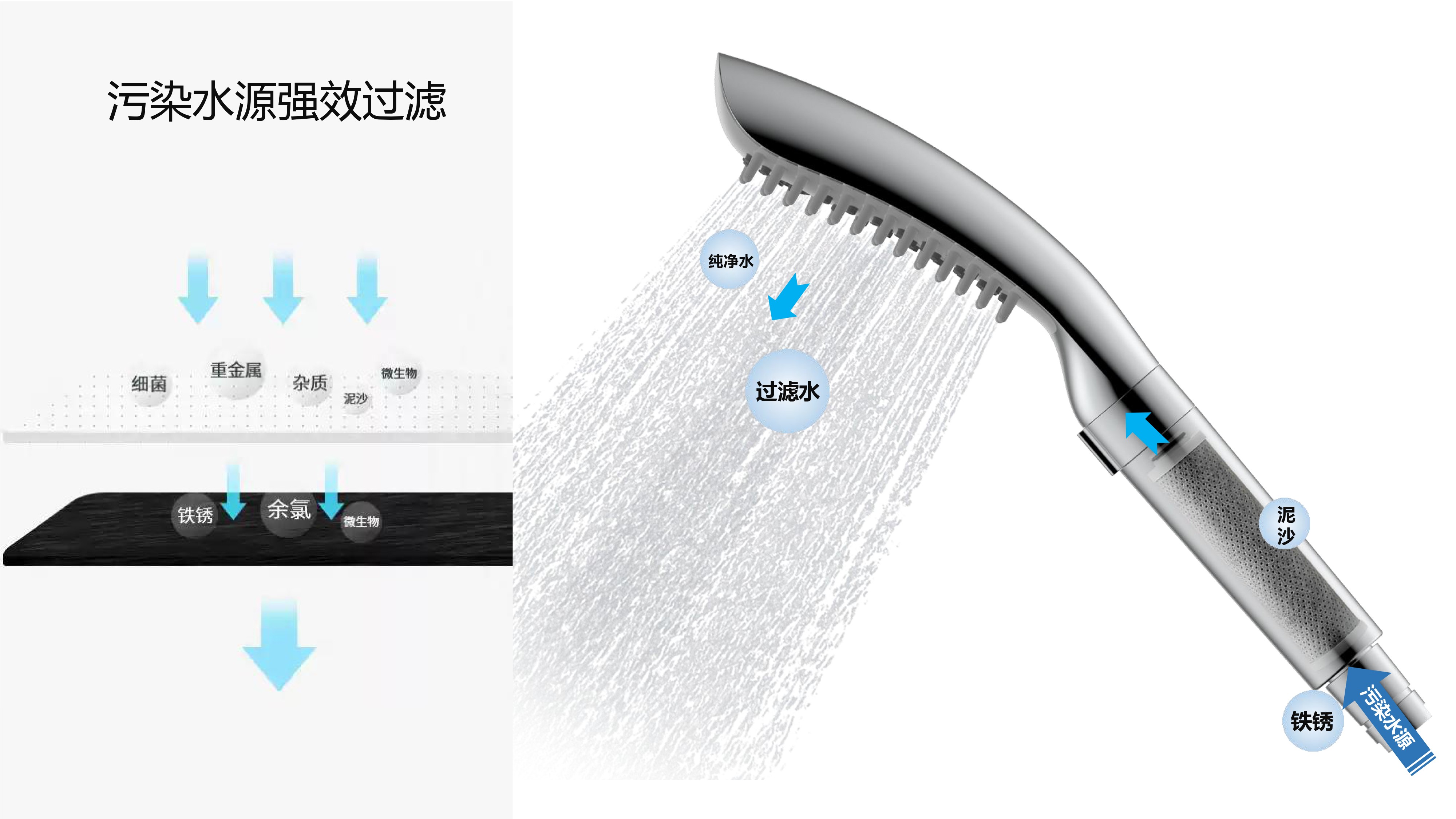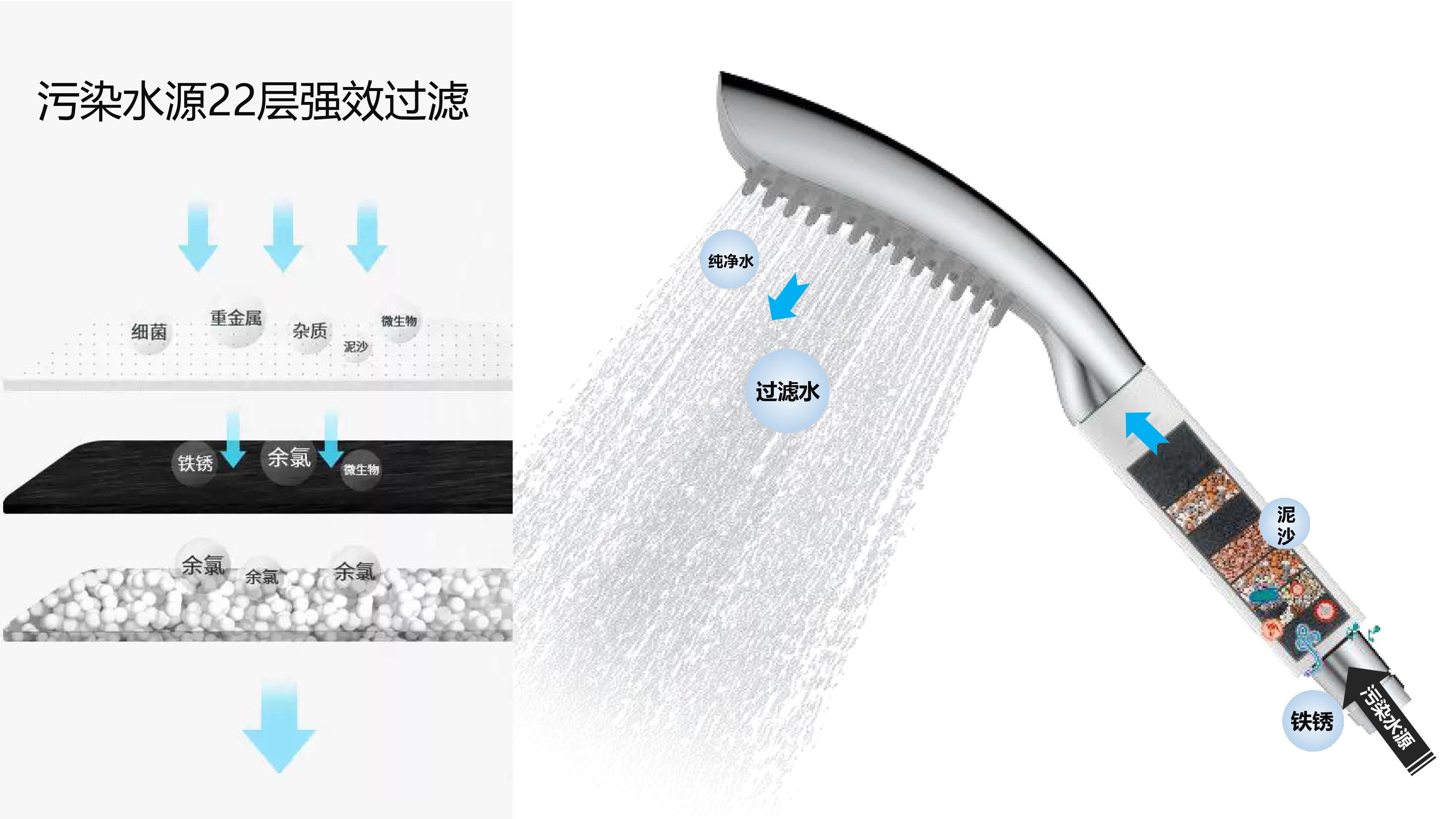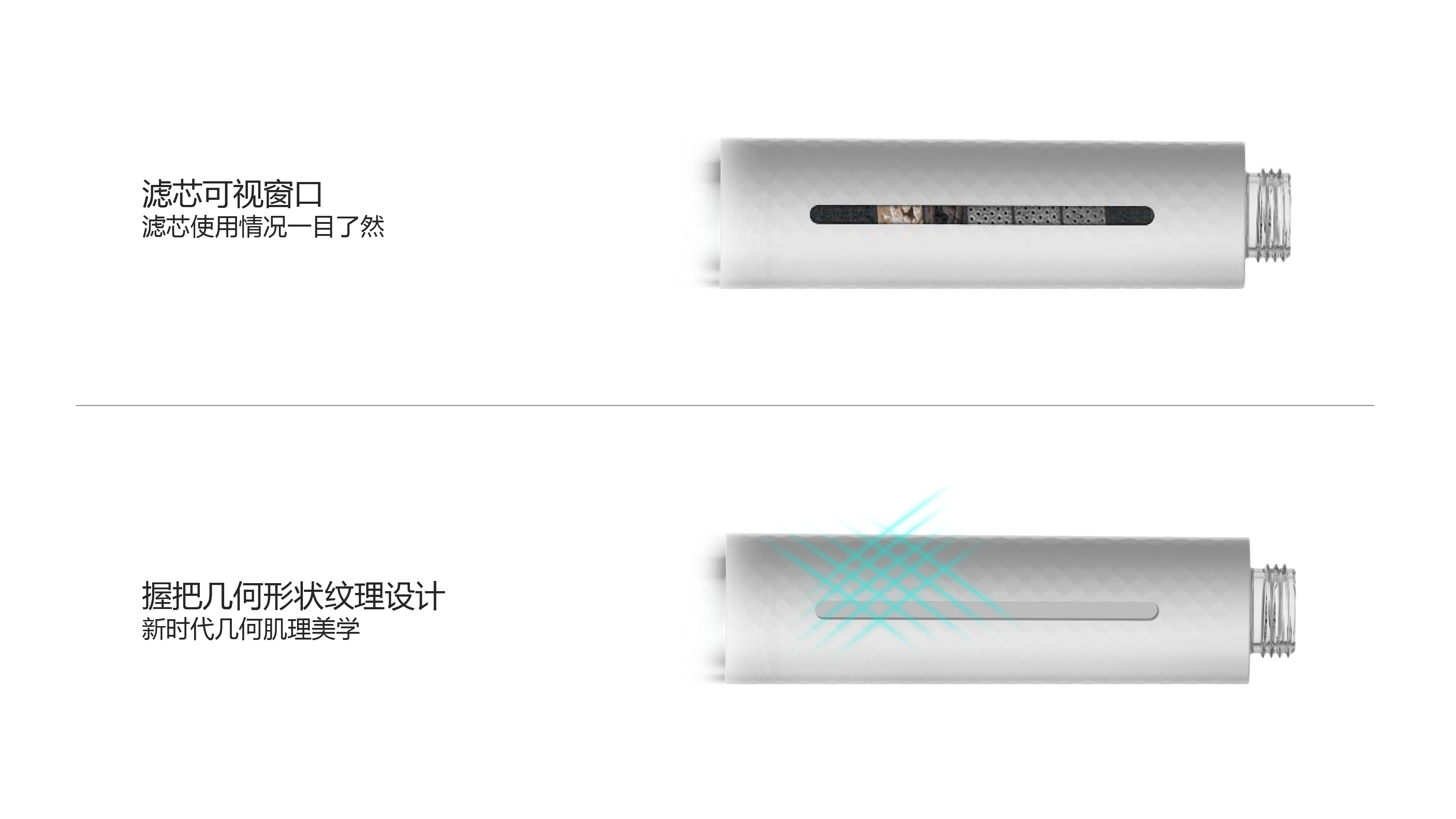 Deep cleaning, filtering water source, enjoying comfortable and relaxing bathing experience; Distinctive dial key to pause water; Comb, massage and relax the head, deeply clean the residual foam; The filter element can be seen through the window, and the use condition is clear at a glance; Grip geometric shape texture design, new era texture aesthetics